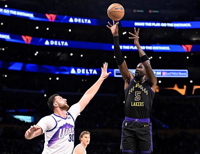 本场比赛中,湖人的先发中锋德安德烈-艾顿(DeAndre Ayton)的表现令人刮目相看。艾顿全场出场29分59秒,投篮13中10,罚球2中0,得到了20分14篮板1助攻1抢断1盖帽的两双数据,其中还包括了4个前场篮板,还有1次失误和2次犯规,正负值为+10。艾顿又一次在攻防两端起到了关键的作用,他在进攻端效率稳定,他的篮下得分能力和终结能力都相当不错,他也是能够完成吃饼方面的任务。艾顿在前后场篮板争抢方面的表现同样出色,而且他在防守端也有着相当积极的态度并且在内线防守方面起到了关键的作用。总体来看,艾顿在攻防两端都展现出了自己的价值,他也是又一次打出了一场令人非常满意的表现。